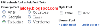 Di samping kanan di bawah tulisan pilih sebuah font untuk Font Teks.Pilihlah jenis font yang kita inginkan dengan cara menandai atau mengisi bulatan kecil.